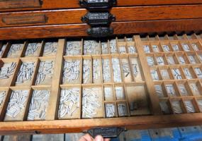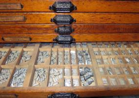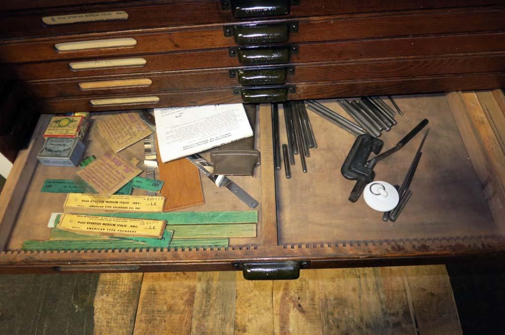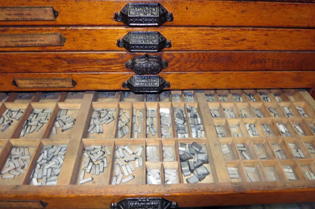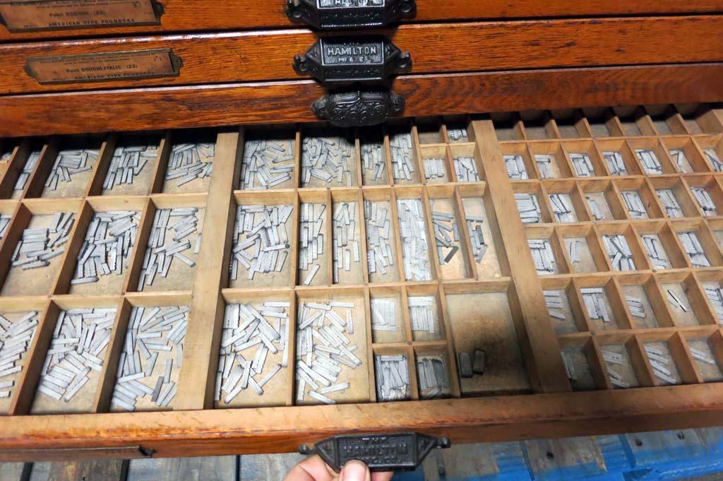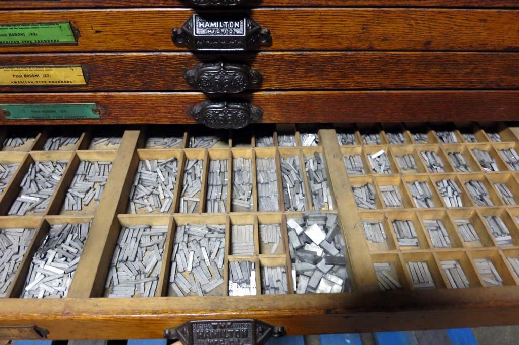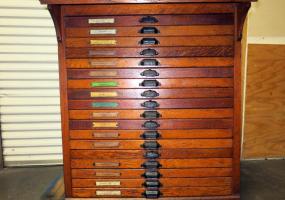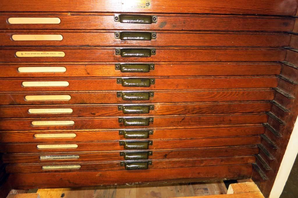 Hamilton 18 Drawer Letterpress Type Cabinet FULL OF TYPE w/ Composing Top