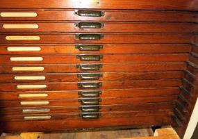 Home / Printing / (100 Years Old) Hamilton 18 Drawer Letterpress Type Cabinet FULL OF TYPE w/ Composing Top Back to catalog